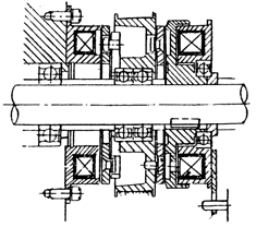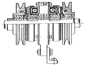 5、兩臺(tái)DLD5-XX單片電磁離合器在通軸上組合安裝。